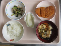 とんかつ 小松菜ともやしのお浸し すまし汁 ごはん 梨 |
