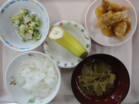 餃子のあんかけ ブロッコリーと卵のサラダ すまし汁(白菜、えのき) ごはん バナナ |