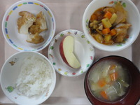 鶏肉とさつま芋の中華煮 厚揚げの煮物 味噌汁(白菜) ごはん りんご |