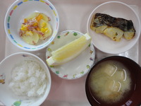 白身魚の西京焼き ポテトとコーンのミルク煮 味噌汁(麩) ごはん グレープフルーツ |
