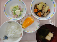 大豆の五目煮 ごま酢キャベツ とろろ昆布汁 ごはん バナナ |