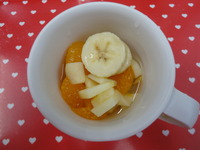 | フルーツポンチ | かぼちゃのそぼろ煮 切り干し大根の含め煮 コーンシチュー 細巻 バナナ |