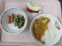 | フル-ツヨ-グルト | ウインナー 切り干し大根のごま酢和え カレ-ライス りんご |