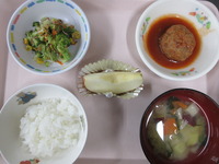 ハンバ-グソ-ス煮 ブロッコリ-とコーンのおかか和え みそ汁(さつまいも) ごはん りんご |
