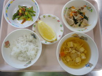 | フルーツポンチ | ごはん 肉じゃが わかめの酢の物 みそ汁(切り干し大根) ミニトマト グレープフルーツ |