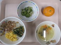 ビビンバ きゅうりとキャベツの昆布和え わかめスープ みかん |