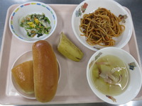 ナポリタン 小松菜サラダ 玉ねぎとベ-コンのスープ 完熟ロ-ル バナナ |