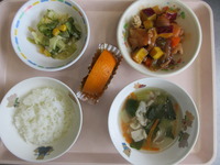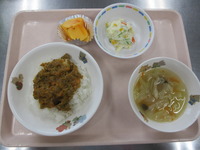 ドライカレ- ポテトサラダ コンソメスープ 柿 |