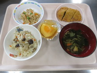 とんかつ 切干大根の含め煮 すまし汁 洋風きのこごはん 柿 |