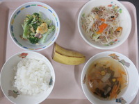 焼きビ-フン ブロッコリ-と卵のサラダ わかめスープ ごはん バナナ |