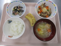 牛肉とじゃが芋の煮物 千切大根とひじきのサラダ みそ汁(厚揚げ) ごはん バナナ |