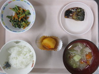 焼き鯖 小松菜と人参のごま和え 豚汁 ごはん 柿 |