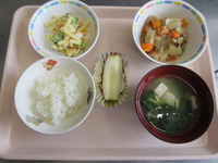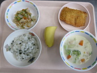 白身フライ キャベツのおかか和え クリ-ムシチュー わかめごはん |