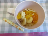 白身魚のクリ-ムコ-ン焼き カレ-きんぴら 野菜とウインナ-のスープ ごはん バナナ |
