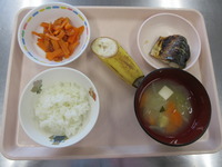 焼き鯖 にんじんの和風サラダ みそ汁(玉ねぎ) ごはん バナナ |