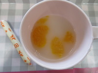 豆腐の松風焼き 小松菜ともやしのお浸し サ-モンシチュウ- ごはん はっさく |