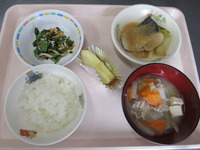 さばのみそ煮 ほうれん草とささみの酢和え 豚汁 ごはん りんご |