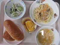 チキンときのこのクリ-ムパスタ コ-ン卵ス-プ コ-ンスロ-サラダ 超熟ロ-ル オレンジ |