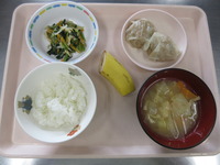しゅうまい 小松菜とじゃこの和え物 みそ汁(キャベツ・揚げ) ごはん バナナ |