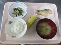 白身魚のごま照り焼き ポパイサラダ なめこのみそ汁 ごはん バナナ |