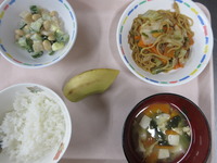 焼きそば 大豆とこんにゃくのサラダ 青菜のみそかき玉汁 ごはん バナナ |