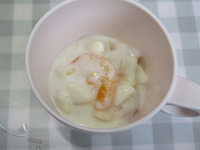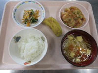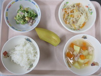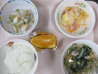 ぎょうざのあんかけ にんじんのじゃこごま和え 卵豆腐の冷やし汁 ごはん バナナ |
