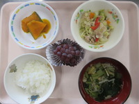豚肉とキャベツのみそ炒め かぼちゃ煮 冷たいすまし汁 ごはん ぶどう |