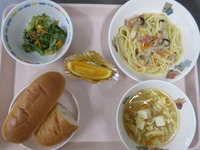 チキンときのこのクリ-ムパスタ ブロッコリ-とコーンのおかか和え 卵ス-プ 超熟ロ-ル オレンジ |
