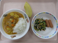 ウインナ- 小松菜のツナ酢和え カレ-ライス バナナ |