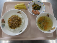 ウインナー 小松菜の梅和え わかめスープ ドライカレー バナナ |
