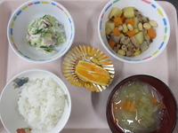 大豆の五目煮 ハムサラダ みそ汁(うすあげ) ごはん オレンジ |