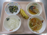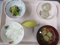 しゅうまい 小松菜とじゃこの和え物 麩のすまし汁 ごはん バナナ |
