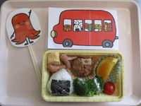 【おべんとうバス】 ハンバ-グ ウインナー 卵焼き ブロッコリ- ミニトマト オレンジ おのぎり |
