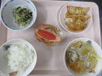 ぎょうざのあんかけ 切干大根のごま酢和え ビ-フンス-プ ごはん グレ-プフル-ツ |