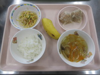 | フル-ツヨ-グルト | しゅまい 令ばん三すう コンソメス-プ ごはん バナナ |
