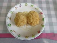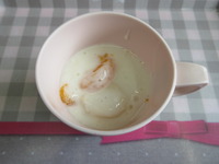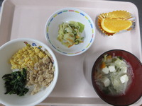 | ぽたぽた焼き | そぼろ丼 ごま酢和え みそ汁(千切大根) オレンジ |