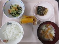 焼き鯖 キャベツとほうれん草の磯和え 豚汁 ごはん オレンジ |