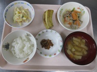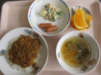 ドライカレ- ウインナ- 大豆とこんにゃくのサラダ わかめス-プ オレンジ |