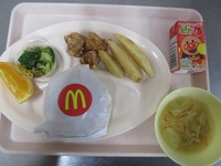 | お菓子 | チ-ズバ-ガ- からあげ フライドポテト ブロッコリ-のおかか和え コンソメス-プ オレンジ |