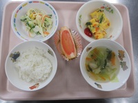 スパニッシュオムレツ スパゲティサラダ わかめス-プ ごはん グレ-プフル-ツ |