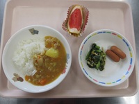 ウィンナ- 小松菜とじゃこの和え物 カレ-ライス グレ-プフル-ツ |