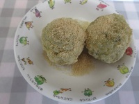 | お麩のきなこスナック | 白身魚のクリ-ムコ-ン焼き ポパイサラダ 肉団子ス-プ ごはん バナナ |