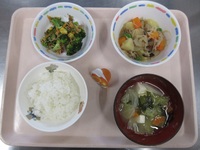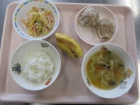 肉じゃが ひじきサラダ みそ汁(きゃべつ・あげ) ごはん バナナ |