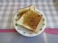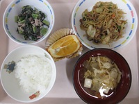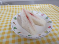 | ジャムサンド | 焼きそば 小松菜とひじきのごまマヨ和え かき玉汁 ゆかりごはん はっさく |