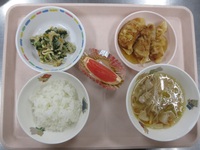| フル-ツヨ-グルト | シュ-マイ 冷ばん三すう コンソメス-プ ごはん バナナ |