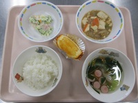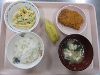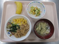 | ぱたぱた焼き | そぼろ丼 ごま酢きゃべつ みそ汁(切り干し大根) バナナ |