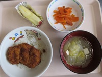 ソ-スかつ丼 にんじんの和風サラダ みそ汁(白菜・玉ねぎ) りんご |